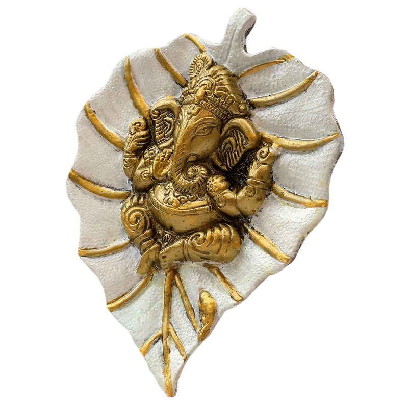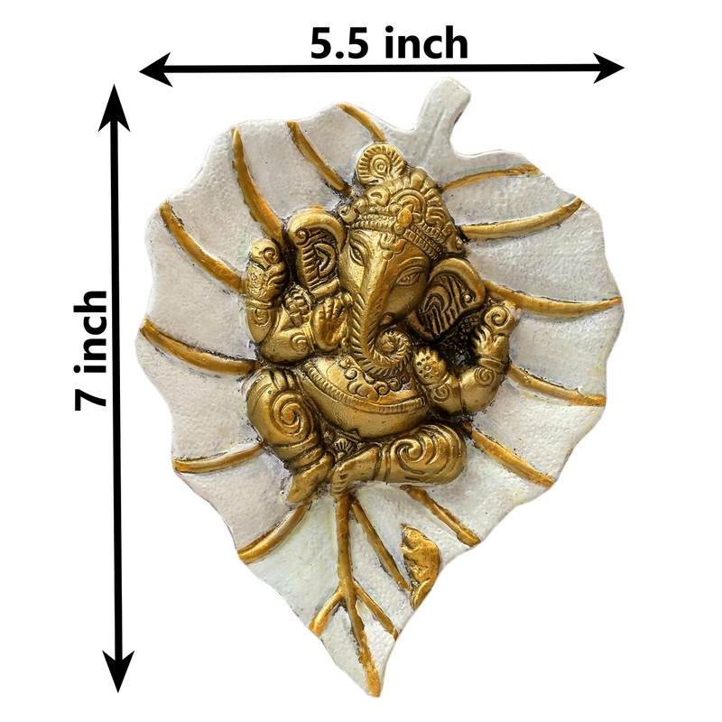 - VIBRANT AND CHARMING DESIGN: Handcrafted metal sculpture featuring Lord Ganesha seated on a beautifully detailed leaf, showcasing exquisite craftsmanship and intricate design elements that add a touch of spiritual elegance to any space.