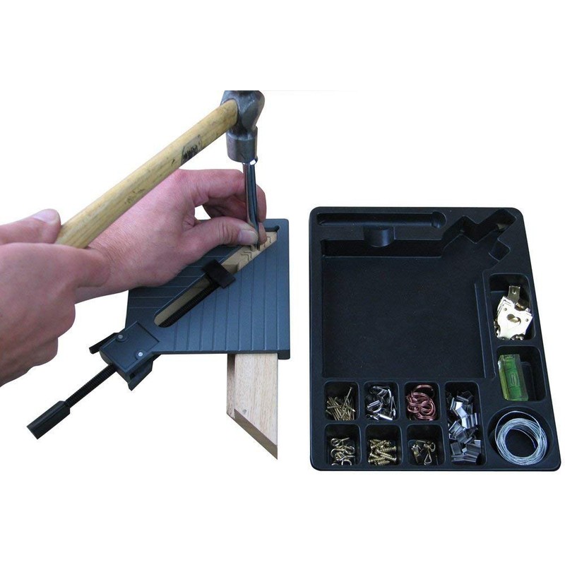 - Kit includes; Metal Mitre clamp for accurate tight mitres, Magnetic tipped V-nail driver (use your own hammer), 165 piece hardware kit for finishing & hanging the frame