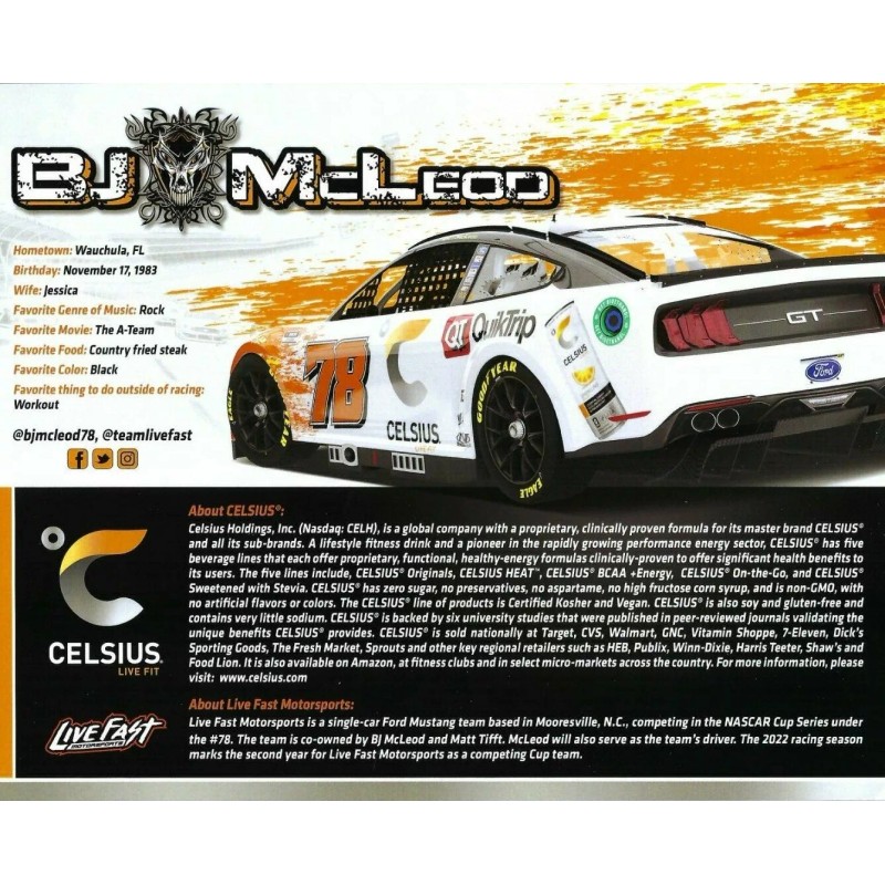 Chase 2022 BJ MCLEOD “CELSIUS LIVE FIT ” #78 NASCAR CUP SERIES POSTCARD