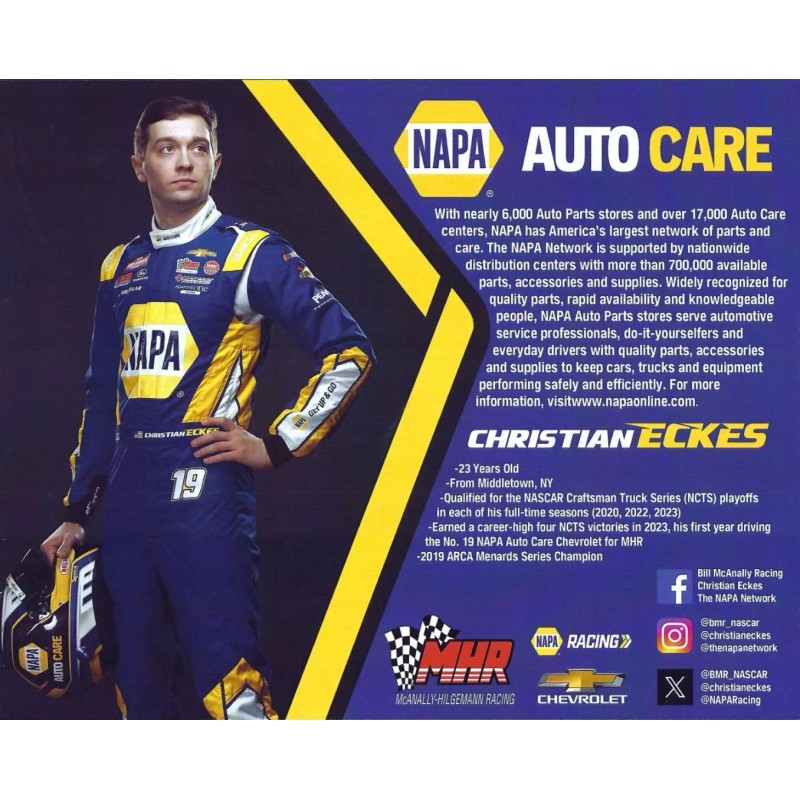 Chase 2024 CHRISTIAN ECKES “NAPA AUTO CARE" #19 NASCAR CRAFTSMAN TRUCK SERIES POSTCARD
