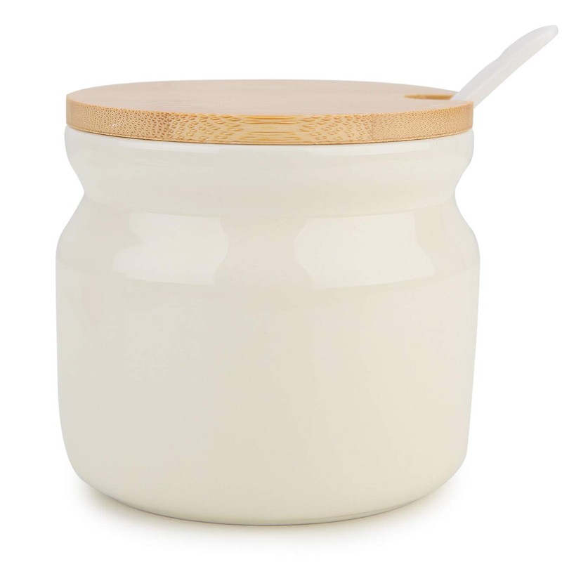 - 👍With Lid and Spoon: With a well-matched wooden lid that fits perfectly with the ceramic spoon, the spice jar lid has fixing grooves to cover the sugar jar nicely. Not only can it be convenient for your classification and use, but it can also make a beautiful decoration for your kitchen and keep your kitchen organized.