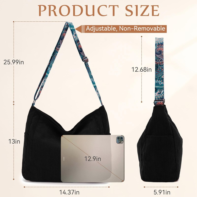 - DURABLE & PRACTICAL:Made of high-quality, foldable corduroy, this hobo crossbody bag for women is breathable, lightweight, and tough enough to meet daily travel needs. The reinforced car lines and durable hardware highlight exquisite craftsmanship. The boho style shoulder straps make this tote bag more fashionable and suitable for various styles of matching.