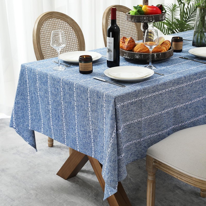 Chassic 60 x 104 inches Farmhouse Style Linen tablecloths, Wrinkle Resistant Washable Dining Room Table Cloths for 6 Foot Rectangle Tables - Blue