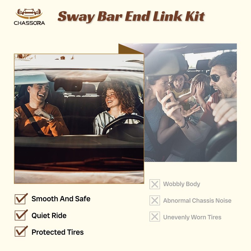 - 【Eliminate Noise】When your vehicle experiences issues like suspension noise during bumps or turns, body sway while driving, a tug on the steering wheel, and uneven tire wear, it's time to replace the sway bars end link.Upgrade to our sway bar can address these issues.