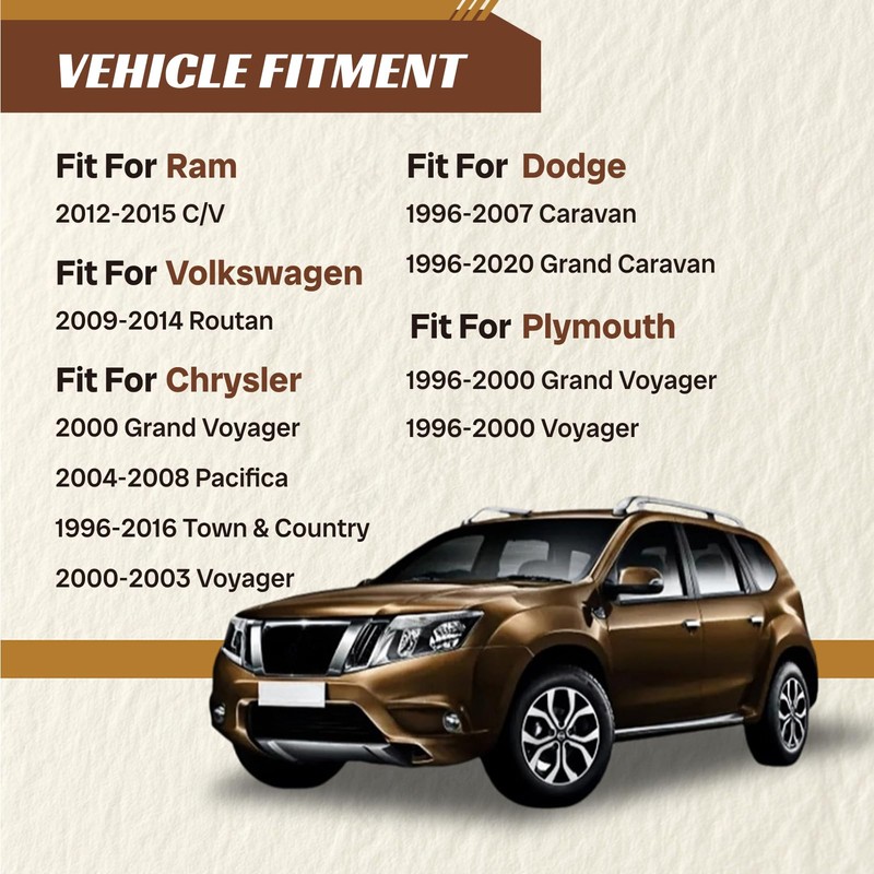 • 【Fitment】K7258 Front Stabilizer Bar End Link Fit for [Ram] 2012-2015 C/V, Fit for [Volkswagen] 2009-2014 Routan, Fit for [Chrysler] 2000 Grand Voyager | 2004-2008 Pacifica | 1996-2016 Town & Country | 2000-2003 Voyager, Fit for [Dodge] 1996-2007 Caravan | 1996-2020 Grand Caravan, Fit for [Plymouth] 1996-2000 Grand Voyager | 1996-2000 Voyager
