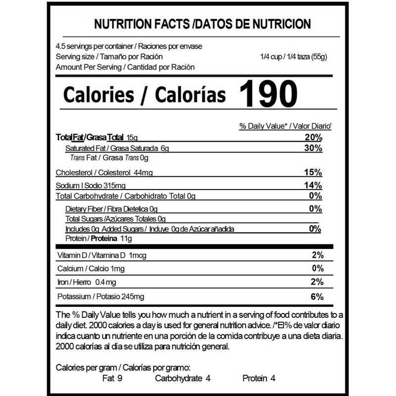 - Ingredients: Pork Meat, Lard, Apple Cider Vinegar, Dried Chilli Peppers Mix, Salt, White Pepper, Oregano, Coriander and Garlic