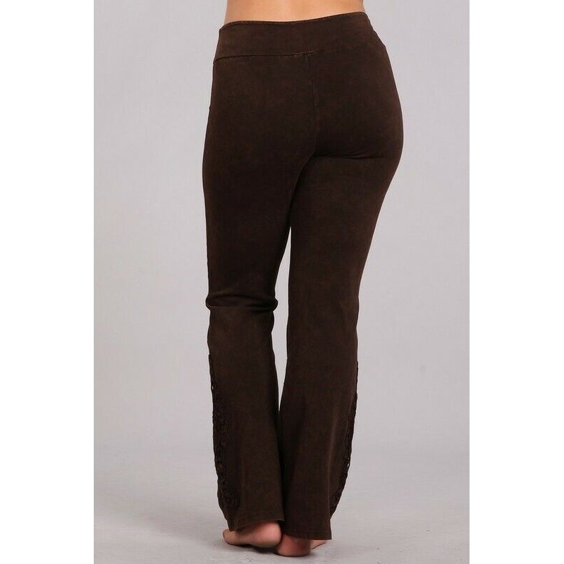 Chatoyant Plus Size Mineral Wash Bootcut Crochet Lace Brown 2XL
