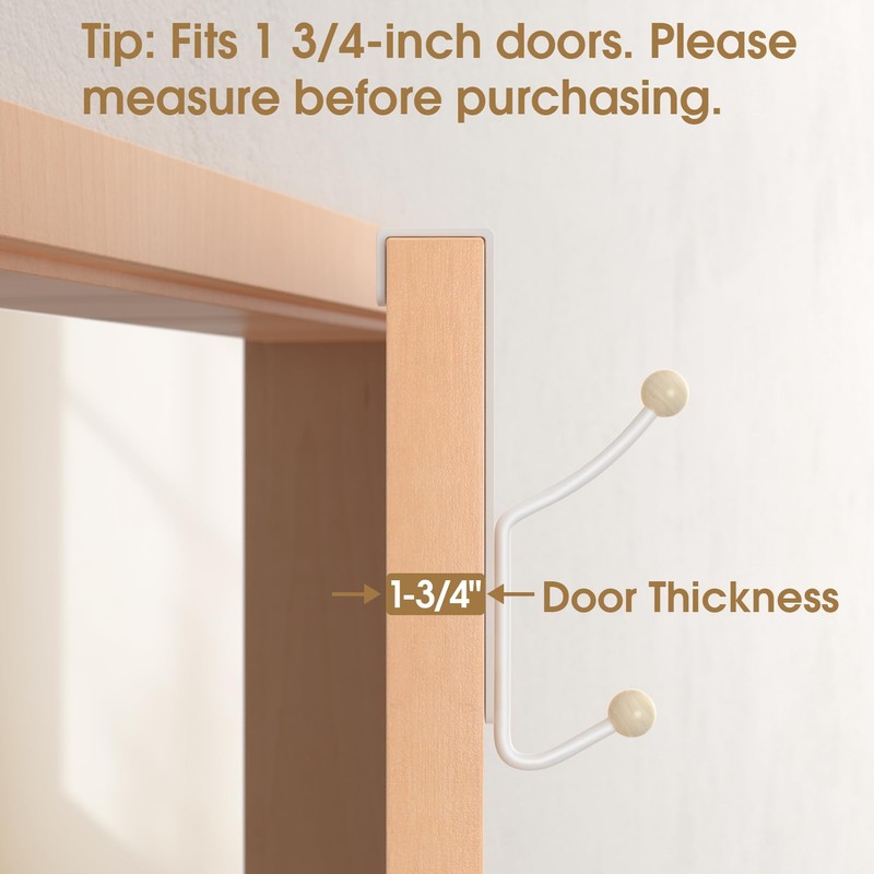 - 【Versatile Compatibility】Designed to fit doors with a thickness of under 1.8 inches, these hooks are suitable for use in various locations such as living rooms, bedrooms, kitchens, or bathrooms. They are perfect for hanging coats, hats, bags, towels, belts, keys, and more.