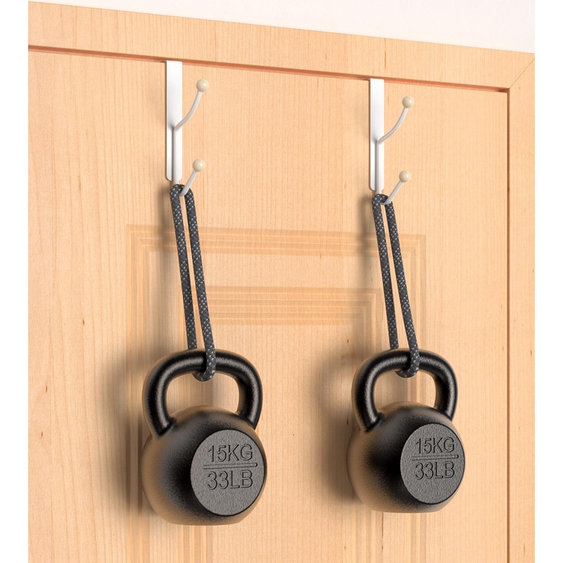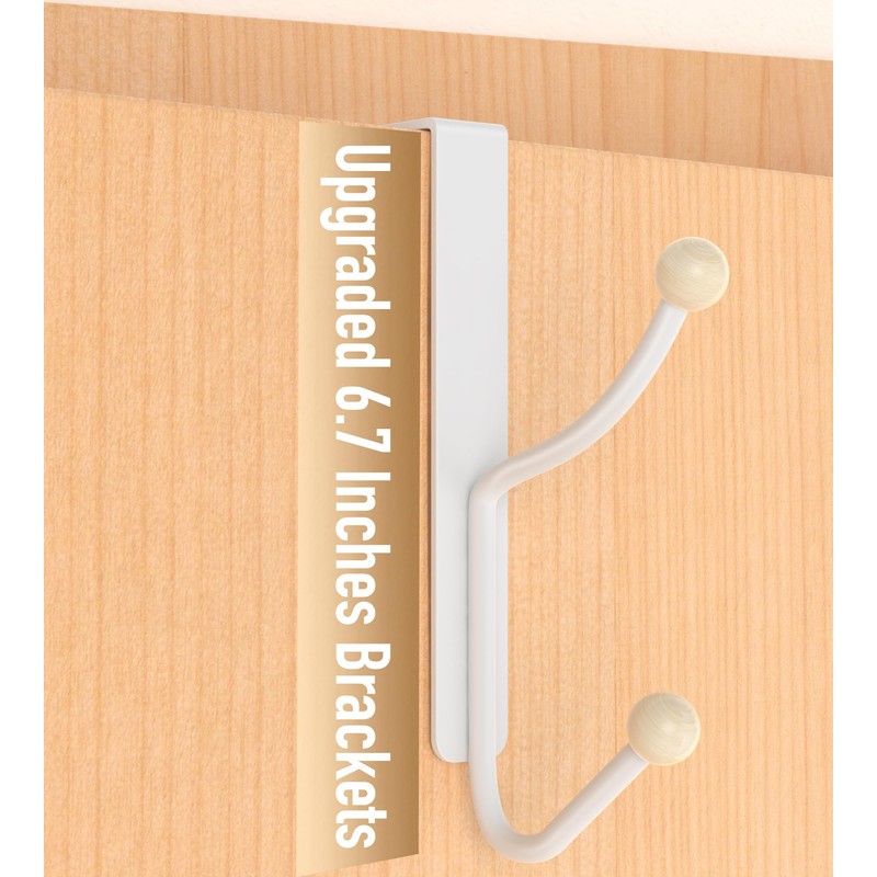 CHAUNCEY HOME Over The Door Hooks Hanger, Fit 4.5 cm (1 3/4 inches) Super Heavy Duty Metal Double Wreath Garland Hooks Hangers Bathroom Accessories and Towel Rack, 2 Pack Matte White