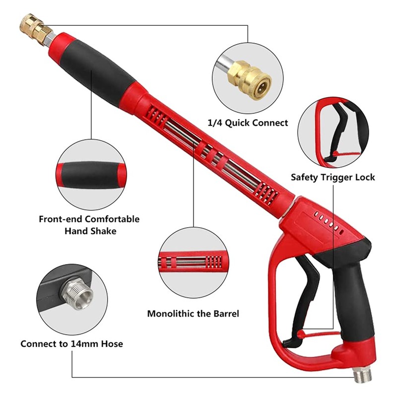- ★【Special Improvement】We provide a 1/4 inch standard extension rod, which can increase the length of the gun body and clean the hard-to-reach places.In addition, the gun body has a safety trigger lock to prevent accidents during use.