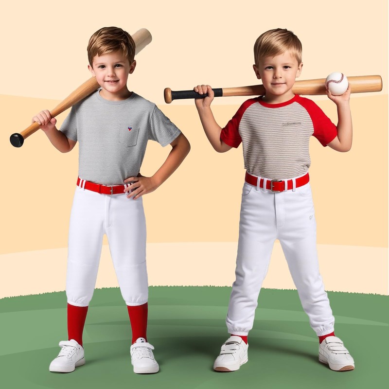 - 【COMPLETE SET】Contains white toddler baseball pants, red belt and red baseball socks. Available from toddler size 5T allowing you to find the perfect fit. Designed for boys and girls T-Ball, Baseball or Softball sports.