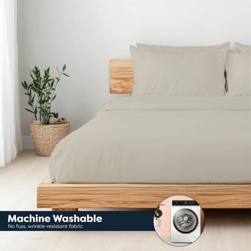ChComfort Deep King Size Fitted Sheet with 2 Matching Pillowcase - Beige Microfiber, All-Around Elastic 40cm depth, Wrinkle-Free, Fade Resistant - Suitable for All! (Beige, King)