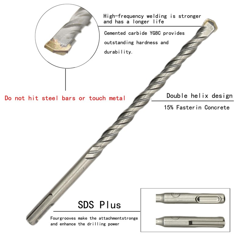 - [PREMIUM MATERIALS] - Exceptionally robust drill hammer bit sds plus set made of Cemented carbide YG8C and 40Cr carbon steel body, ensuring extended tool life, faster performance, and superior durability for heavy-duty masonry tasks.