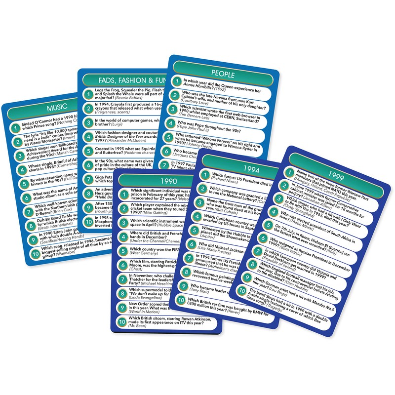 - Play in teams or individually, from Father Ted to the X-Files, Cool Britannia to the World Wide Web, it’s the complete collection of nostalgic trivia - just add the contestants!