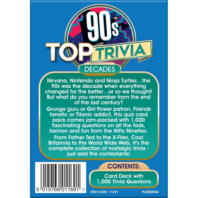 - Grunge guru or Girl Power patron, Friends fanatic or Titanic addict, this quiz card pack comes jam-packed with 1,000 fascinating questions on all the fads, fashion and fun from the Nifty Nineties