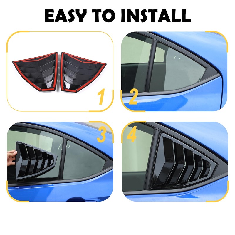- 【Easy Installation】: Rear side window louver shutter cover is easy to install and use, With adhesive tape on the back, Wipe clean your Rear Quarter Window around in advance, and press firmly to ensure a good grip of the adhesive.