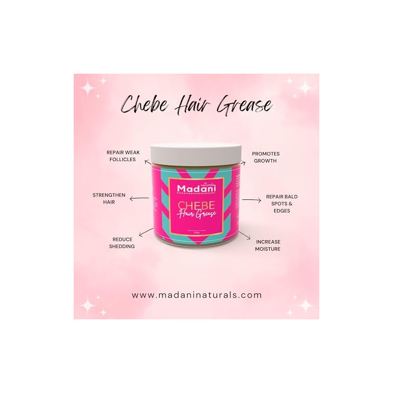 Chebe Hair Grease is a special formula designed to stimulate hair growth while keeping the scalp hydrated and healthy. Its unique blend of natural ingredients, such as Chebe, rosemary oil, and a variety of herbs and essential oils, strengthens and nourishes hair follicles, promoting healthy hair growth.