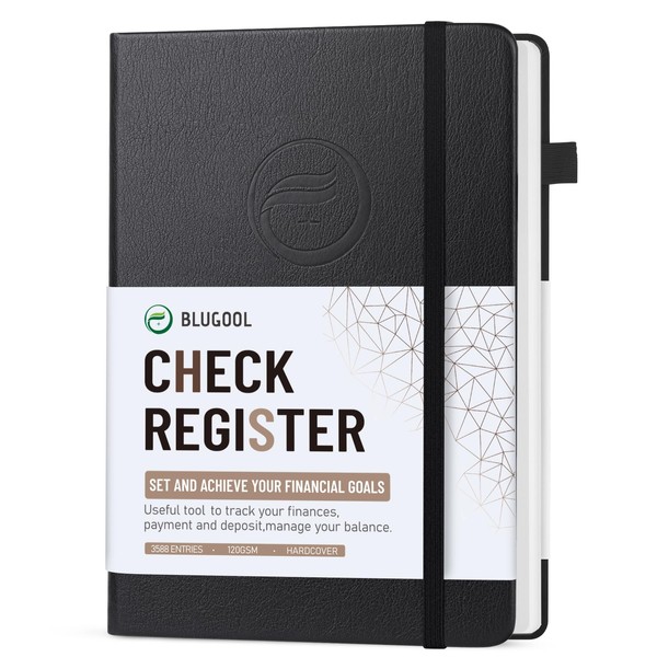 Check Registers for Personal Checkbook, Blugool Checkbook Register with Check & Transaction Registers, Accounting Ledger Log Book for Personal and Work, 5.8" x 8.3" (Black)