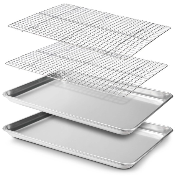 Checkered Chef Baking Sheets for Oven - Quarter Sheet Pan with Stainless Steel Wire Rack Set 2 Pack - Easy Clean Cookie Sheets, Aluminum Bakeware