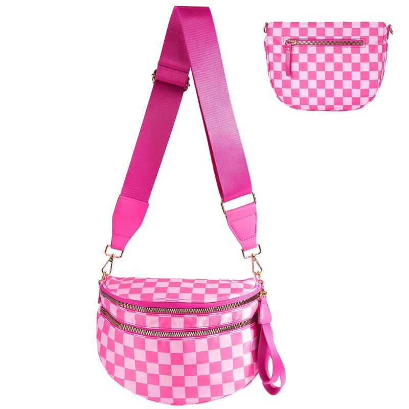 Checkered Crossbody Bag Bum Bags for Women Large Nylon Checkered Purse Fanny Packs Sling Bag