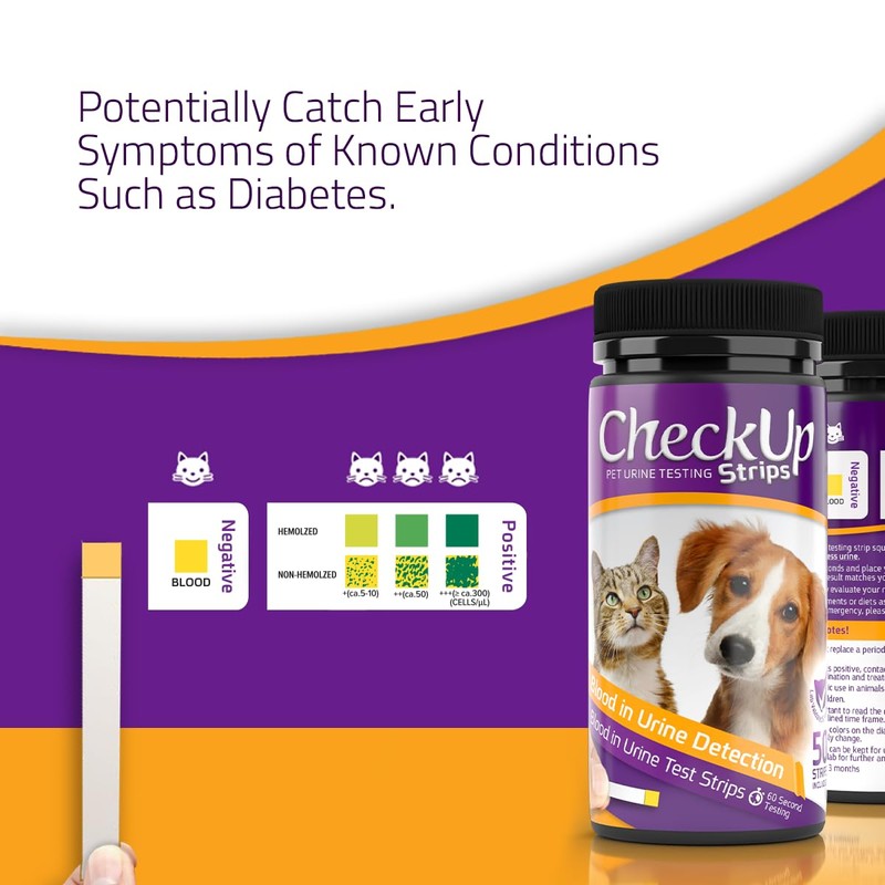 - Non-Invasive, Quantitative, In-Vitro Screen, Our pet urine reagent strips are the perfect tool to help alert you to possible health issues related to Bloodlevels in the urine with your dog or cat, critical health indicatos for common conditions.