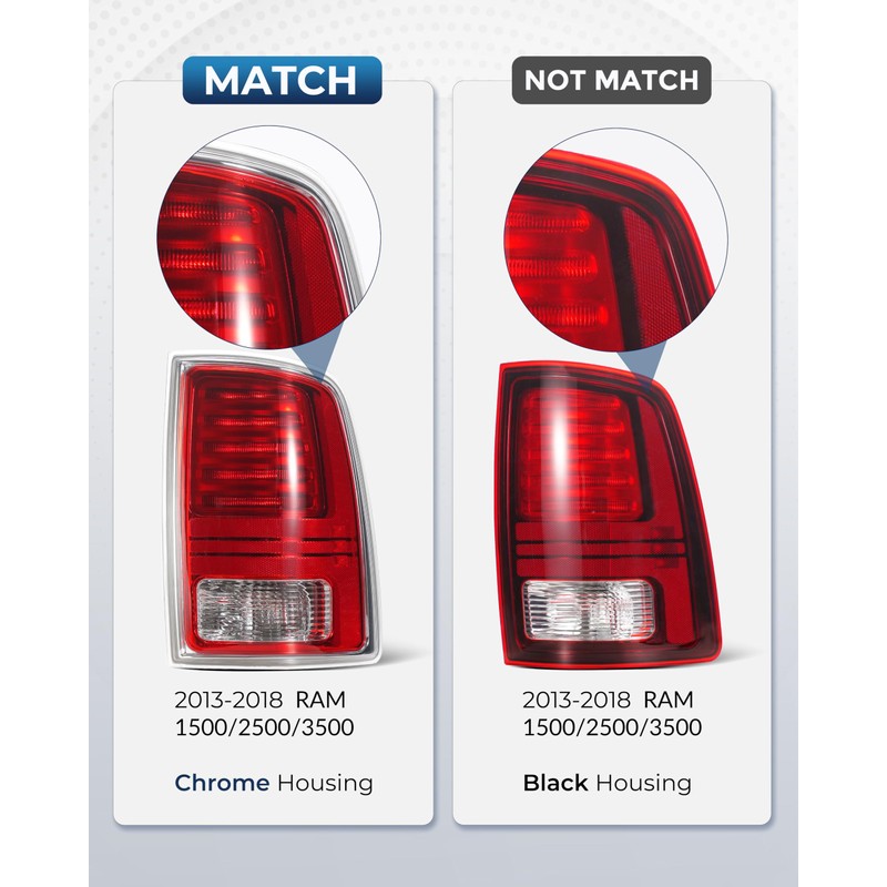 - Fitment: The chrome taillights from CheeLyee compatible with 2013 2014 2015 2016 2017 2018 Dodge RAM1500/2500/3500 Laramie/Laramie Longhorn/Laramie Longhorn Edition/Limited/Longhorn, right passenger side. Replace OEM: CH2801203 68093078AC