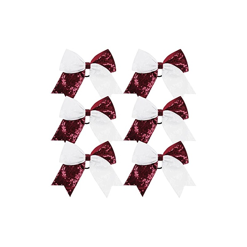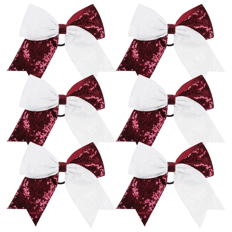 Cheer Bow Metallic Sequin Mermaid 8 Inch 2 Color Cheerleader Cheerleading Jumbo Cheer Bow (White/Maroon)