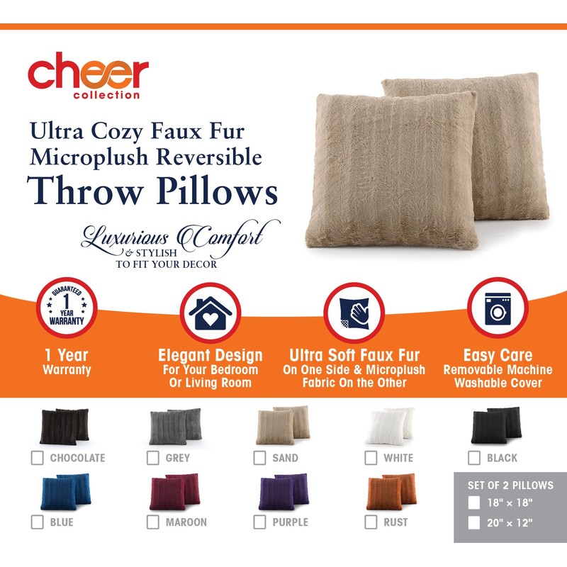 Perfect for adding texture to your space, these decorative faux fur pillows are warm and inviting, calling you to curl up right next to them. The classic decorative fur design throw pillow will add style to the decor of any room and add character to your couch or sofa. This set of 2 pillows includes both the pillow insert and the pillowcase. The throw pillow cover has a hidden zipper and comes off for east washing and care.