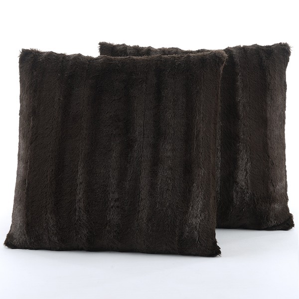 Cheer Collection Faux Fur Throw Pillows - Set of 2 Decorative Couch Pillows - 18" x 18" - Chocolate