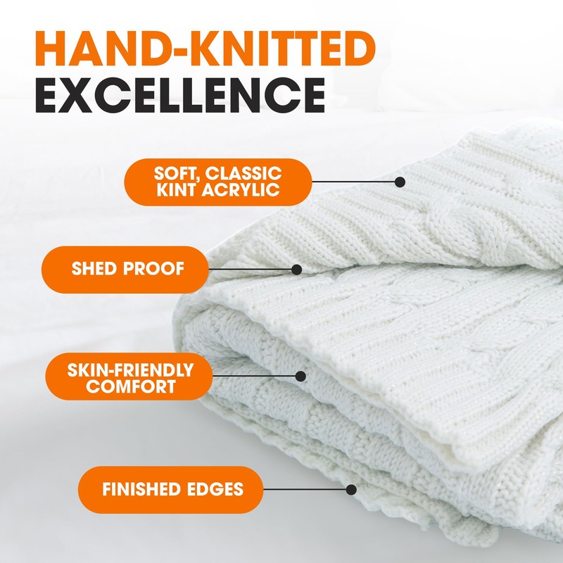 Cheer Collection Cable Knit Throw Blanket - Super Soft, Cozy Knit Blanket for Couch, Bed & Chair, Thick Knitted Throw Blanket for All Seasons, 50"x60" Ivory Acrylic Blanket