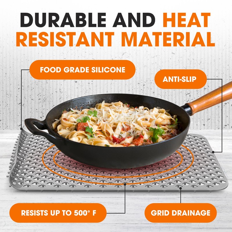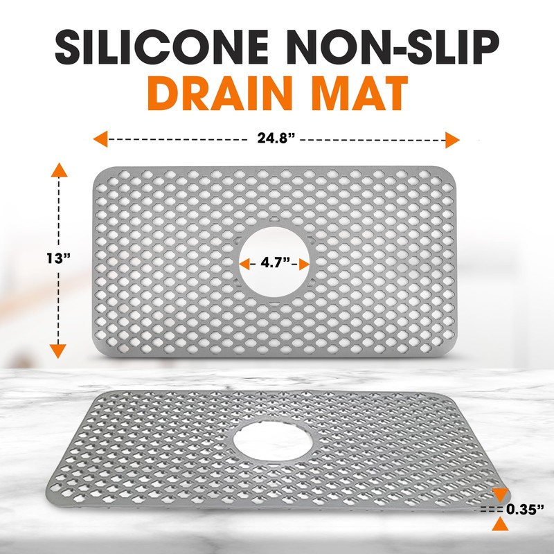 - HEAT-RESISTANT SILICONE PROTECTION: Made from food-grade silicone, this sink protector mat withstands up to 500°F. Use it under hot pots or pans to protect sink surfaces—ideal for any stainless steel or porcelain kitchen sink.