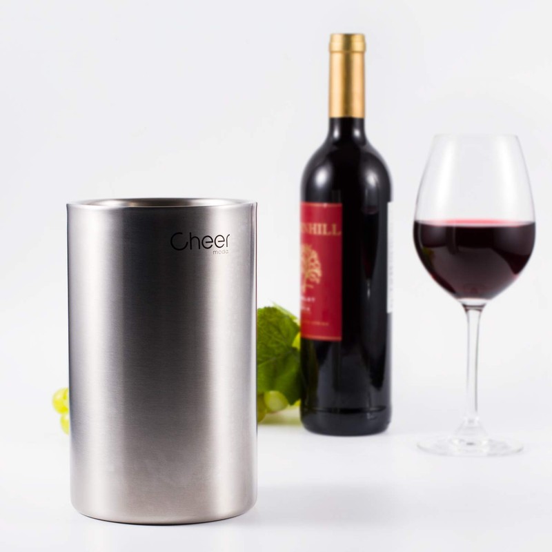 CHEER Wine Chiller Bucket, Stainless Steel Double Walled Iceless Wine Bottle Chiller, Keeps Wine and Champagne Cold Tabletop Stemless Holder 7717-W201-01
