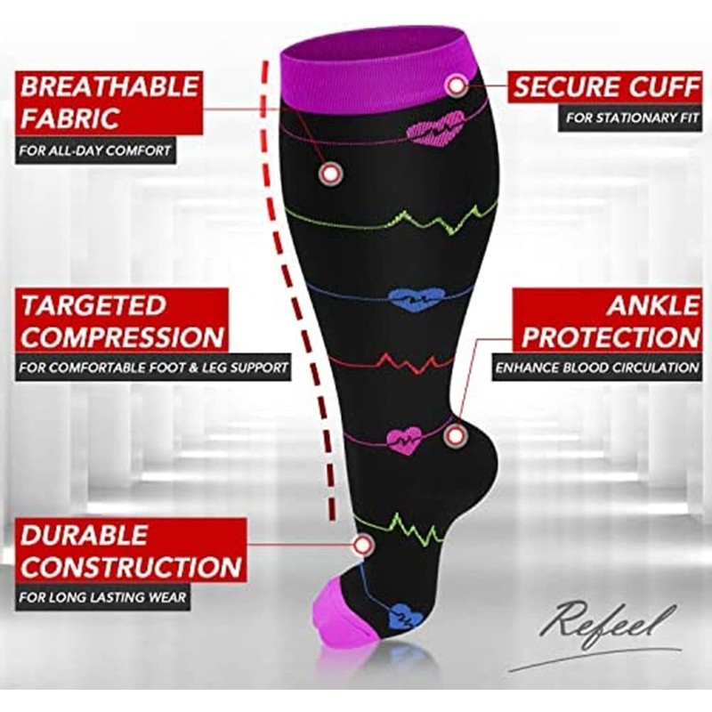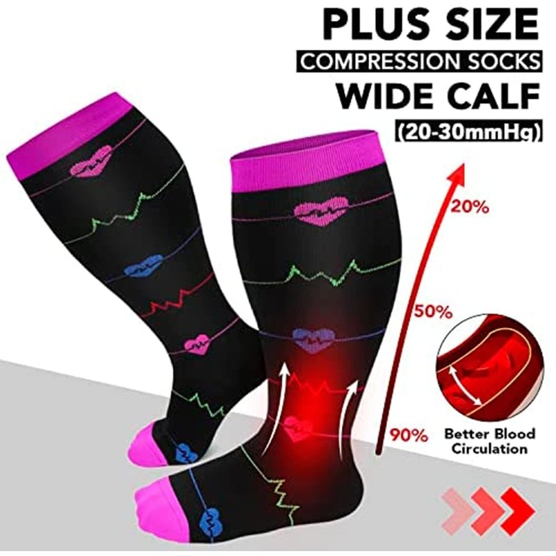• More Size Choice - Plus size (2XL-7XL) you can refer to the size chart to choose the suitable size (and in general we suggest you choose the larger size if you are hesitating between two sizes). Our knee-high compression socks have nice and snuggly support without being too tight and enhance blood circulation effectively.