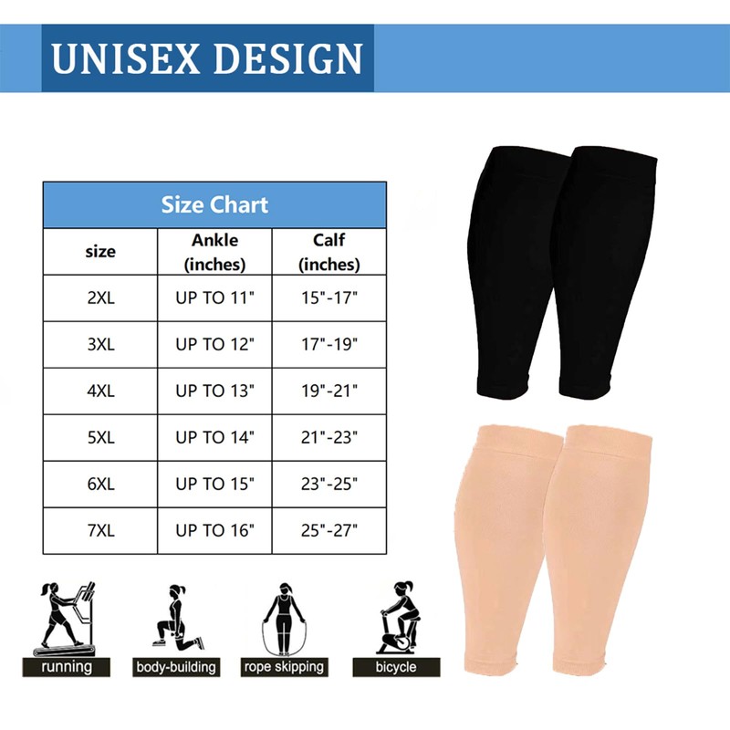 - PLUS SIZE DESIGN: The extra wide calf compression socks are specially designed for men & women who wear them in plus size. Wide calf toeless compression socks are divided into various sizes (2XL-7XL) to meet most people's choices. Please check the size information in the picture before ordering. Any questions, please feel free to contact us, and we will provide you with a great shopping experience.