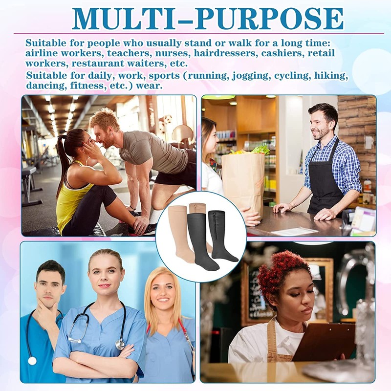 Los calcetines de compresión con cierre para mujeres y hombres son adecuados como un regalo para tu familia y amigos que necesitan estar de pie o hacer ejercicio durante mucho tiempo, aliviar la fatiga de sus piernas y mostrar tu preocupación por ellos.