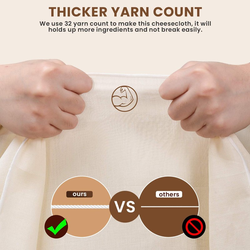 • Reinforced Stitching - At the edge of the cheese cloth we have stitched to prevent shedding. So you can rest assured to use the cheesecloth without worrying about the thread or other debris falling into the food.