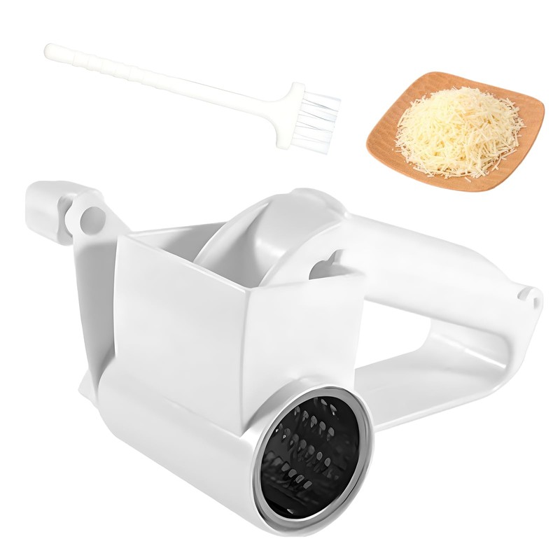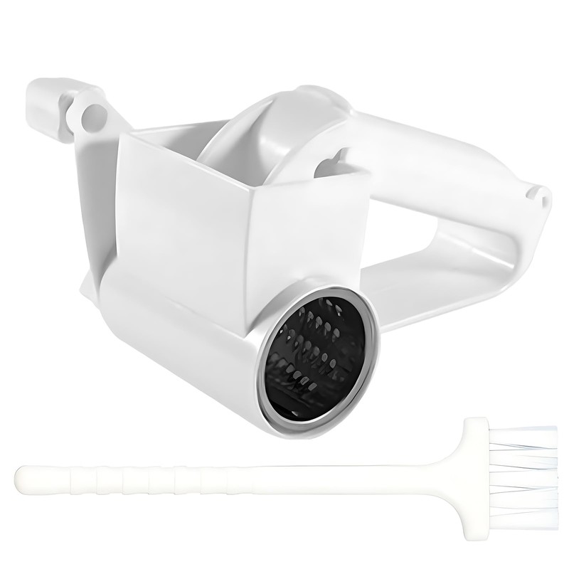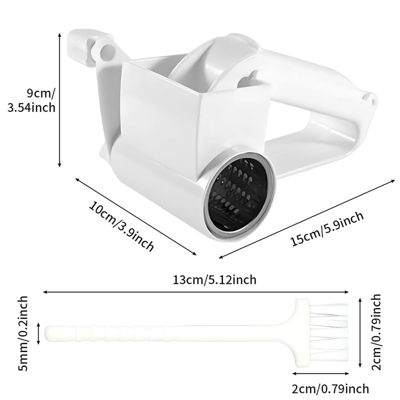 Cheese Grater Hand Crank with Cleaning Brush, Handheld Rotary Cheese Grater, For Grating and Shredding Hard Cheese, Chocolate, Nut, Effortlessly Shred and Shave Cheese (White)