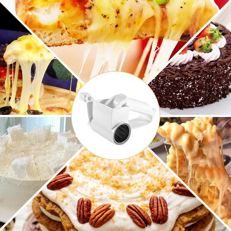 - Versatile Grater: This handheld rotary cheese grater efficiently grates and shaves a wide range of foods like cheese, nuts, vegetables, and chocolate. With its versatile range of uses and user-friendly design, this handheld rotary cheese grater is a must-have kitchen tool for all your grating needs.