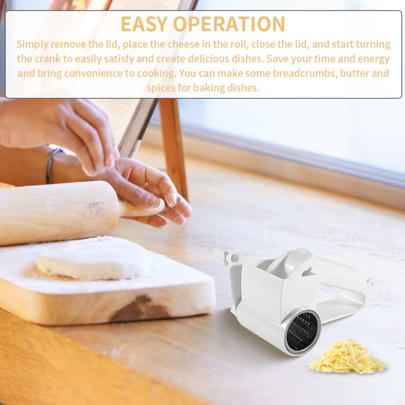 2.Simply Remove the Lid, Place the Cheese in the Roll, Close the Lid, And Start Turning the Crank to Easily Satisfy and Create Delicious Dishes. Save Your Time and Energy and Bring Convenience to Cooking.
