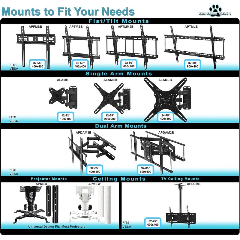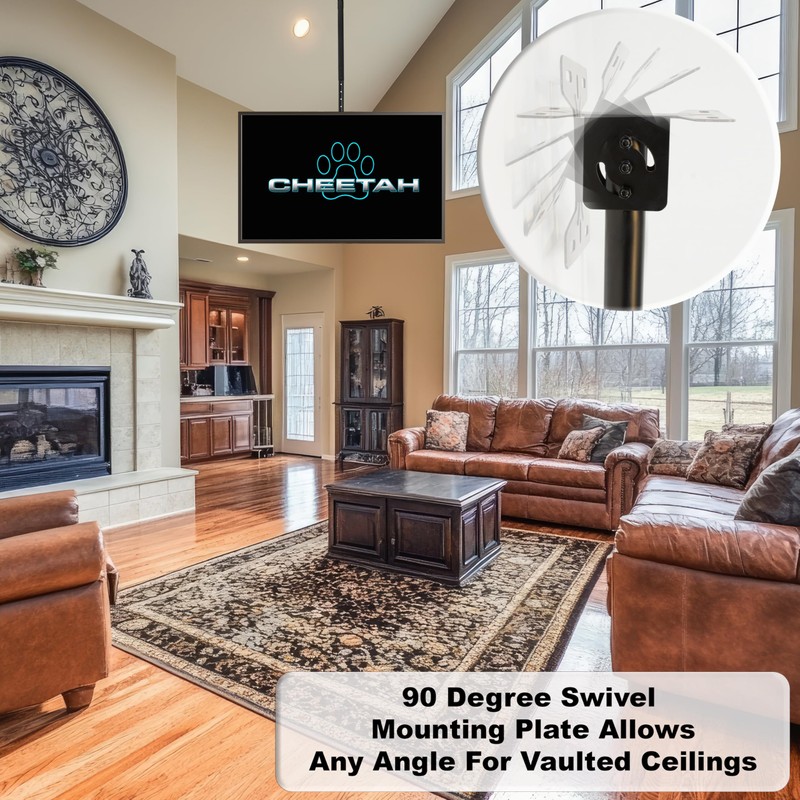 Cheetah Dual Ceiling TV Mount for 37-86 Inch TVs, Max 165lb, VESA 600 (Each Display) and Full 64" Extension Support Newer TVs to 100", Mounts Flat, Vaulted or In-Ceiling, 360 Swivel and 15 Degree Tilt