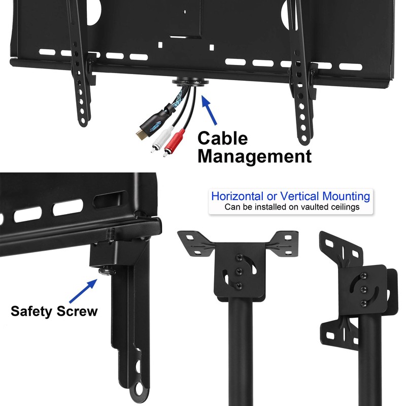 - Ceiling Bracket adjusts for Flat or Vaulted Ceilings (Pitched Roofs). Rotates 90 degrees for In-Ceiling Side of Beam Mounting for a Clean Look. 64" Extension Allows Good Ceiling Gap even for Large TVs