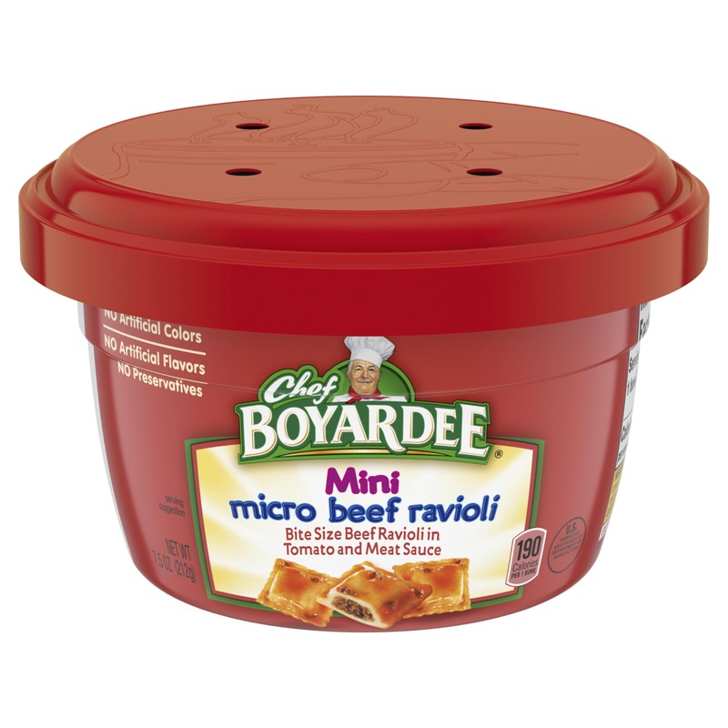 - Delicious and convenient, Chef Boyardee Mini Micro Beef Ravioli has the real ingredients and rich flavor that families know and love
