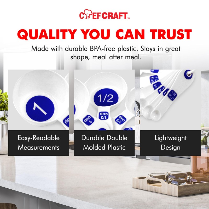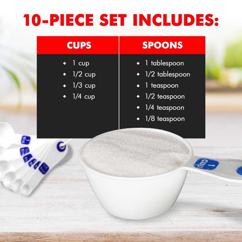 Chef Craft Easy to Read Plastic Measuring Cup Set, 10 Piece, white