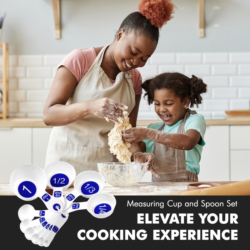 - Includes 1/8 tsp, 1/4 tsp, 1/2 tsp, 1 tsp, 1/2 tbsp, 1 tbsp, 1/4 cup, 1/3 cup, 1/2 cup and 1 cup sizes