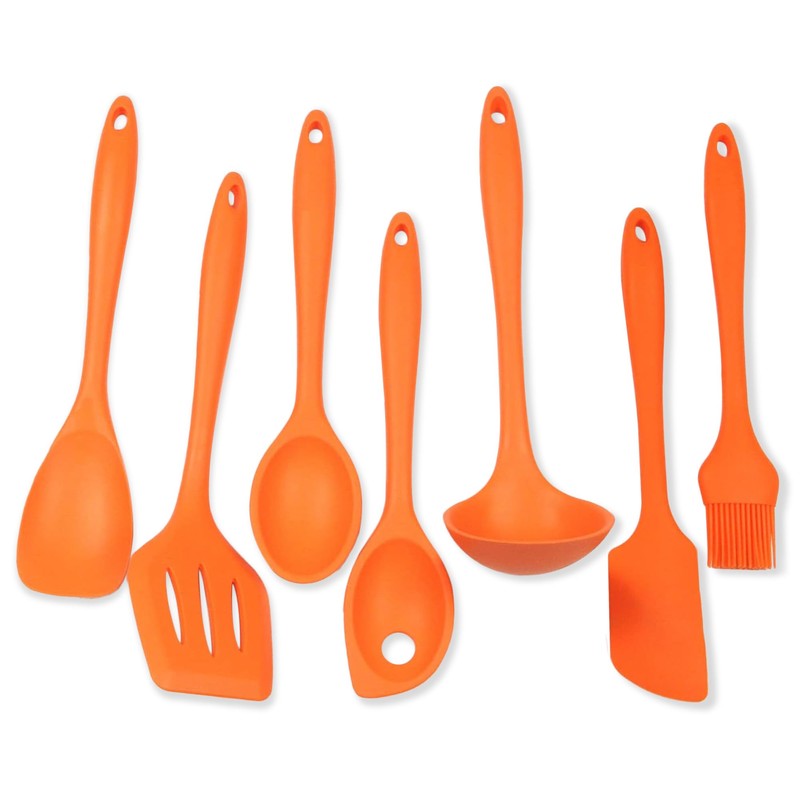 • This 7 piece silicone set includes a turner, basting spoon, mixing spoon, ladle, spatula, spoon, and basting brush