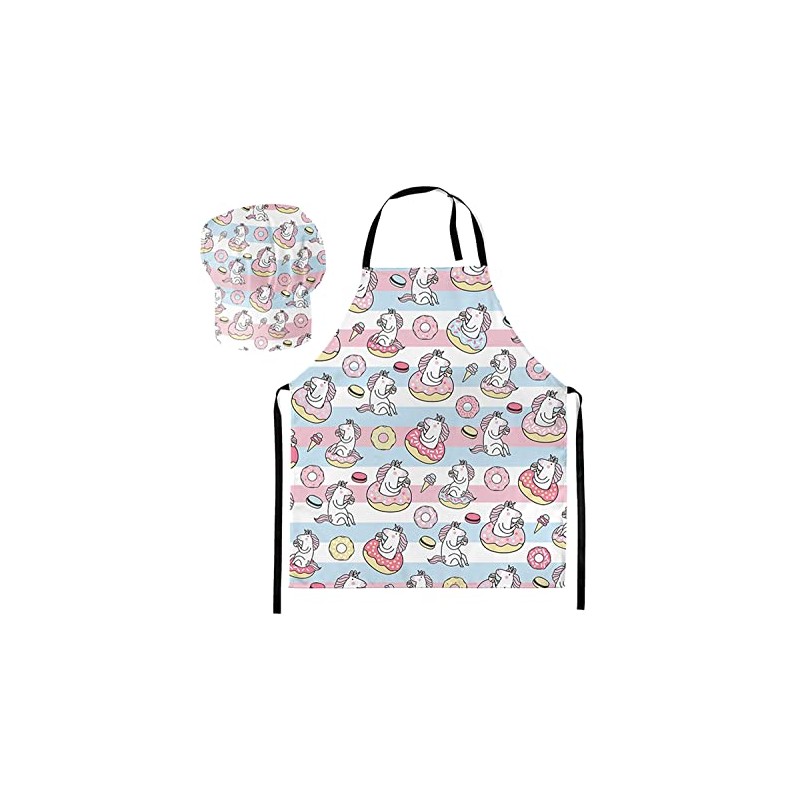 Chef Hat for children with Professional Cooks Hats Baker For Home Kitchen School Fully Adjustable Motif Unicorn [099]