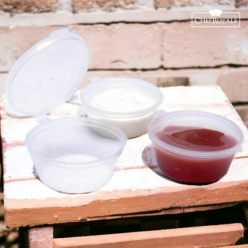 - Versatile Usage: Our Clear Round Hinged Sauce Pots with Lids are perfect for serving a variety of condiments such as chutney, ketchup, and dips. Whether you're running a restaurant, hosting a party, or packing takeaways, these containers are the ideal choice.