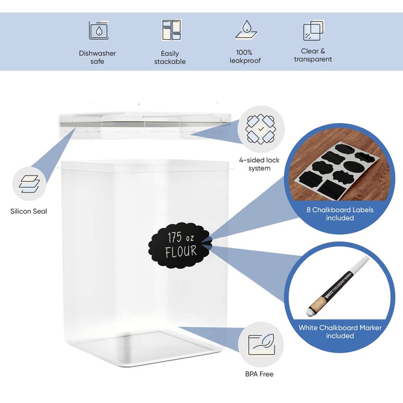 - [Complete Package] - Includes free measuring cups, chalkboard pen & 8 reusable labels allow you to organize your pantry like a pro. These large food containers in a beautiful box is an ideal gift