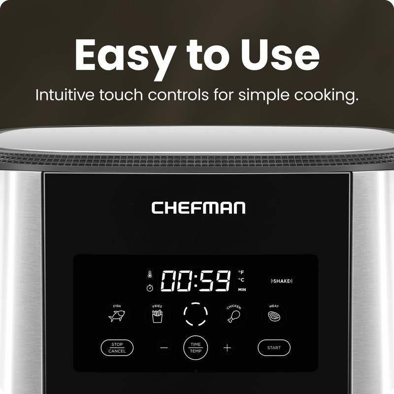 Chefman TurboFry® Touch Air Fryer, XL 8-Qt Family Size, One-Touch Digital Control Presets, French Fries, Chicken, Meat, Fish, Nonstick Dishwasher-Safe Parts, Automatic Shutoff, Stainless Steel