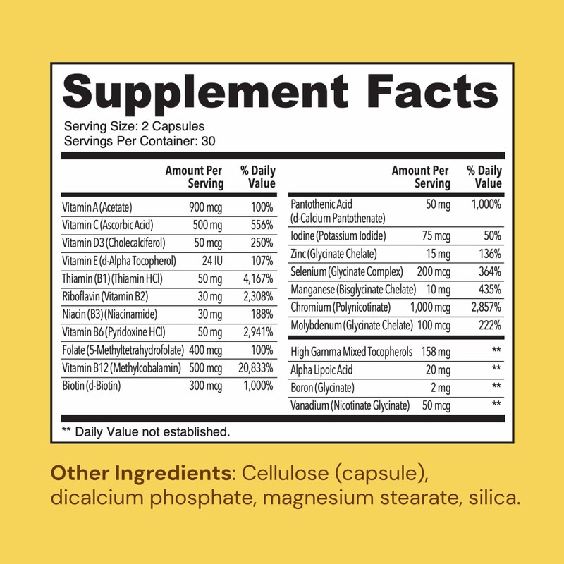 Ameo Life Chelated Daily Multivitamins for Adult Men and Women - Multi Vitamin Supplement with Zinc, Biotin, Iodine, Chromium, Manganese and Vitamins A, B6, B12, C, D and E - 60 Capsules